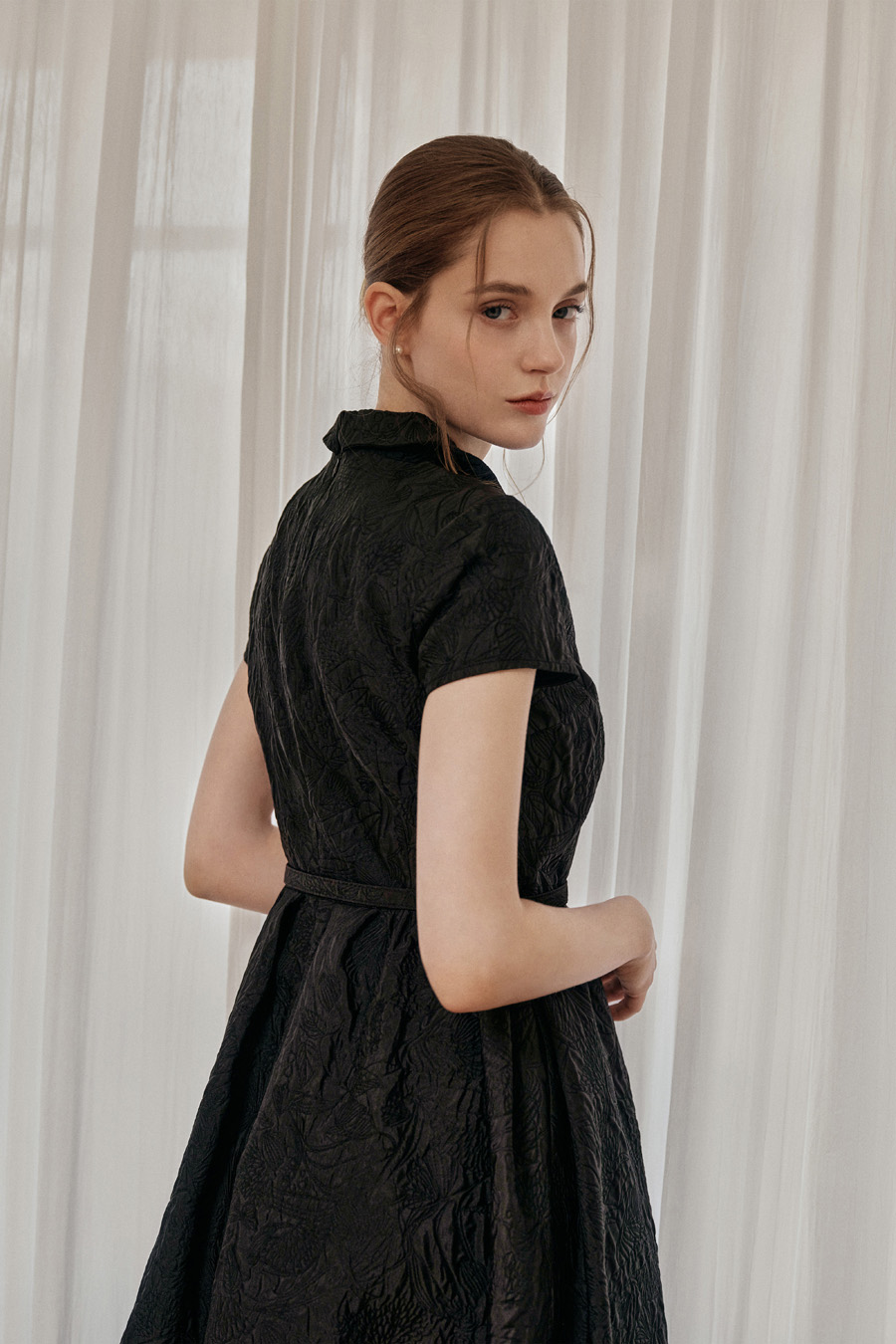 - 고급스러운 플로럴 패턴의 볼륨감 있는 자가드 원단