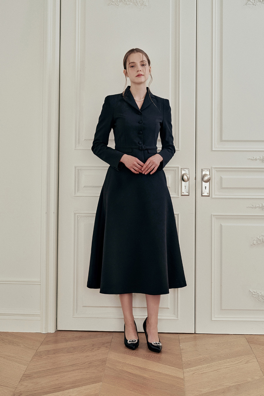 - 허리선부터 퍼지는 플레어 실루엣
