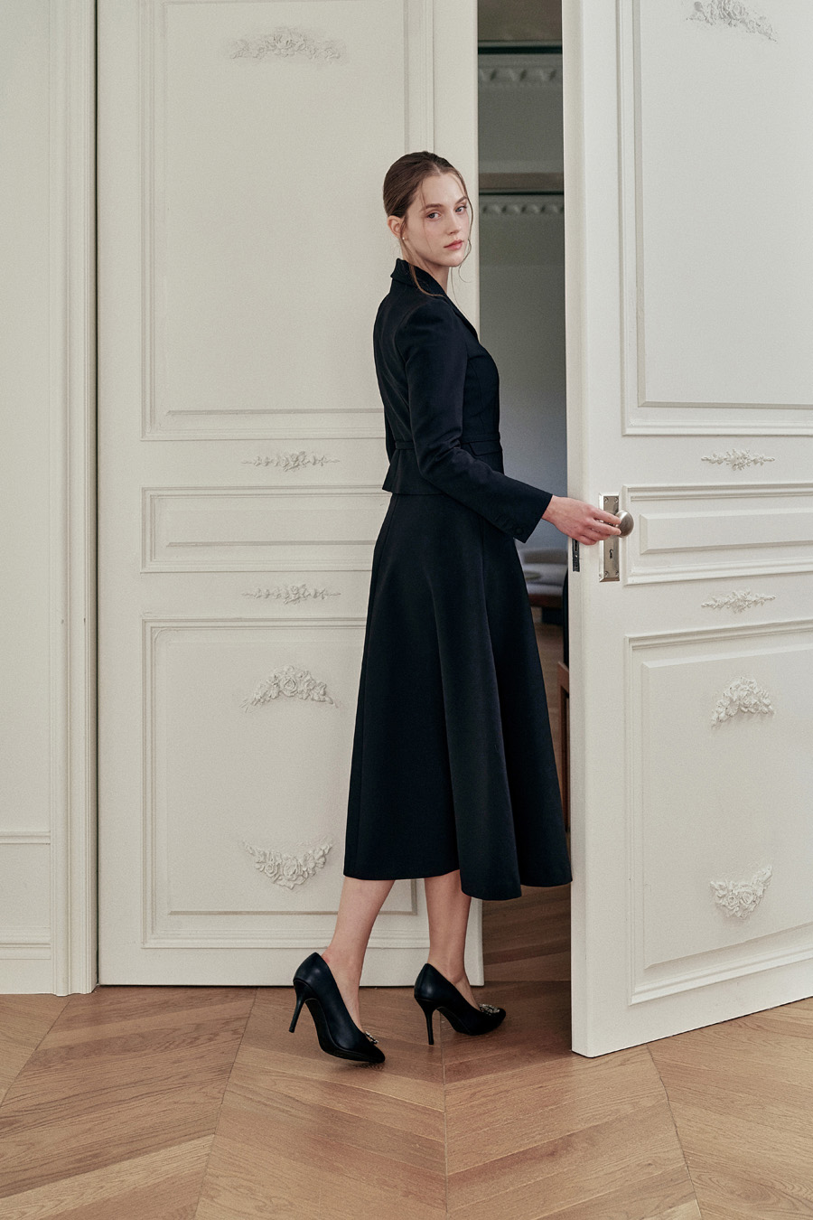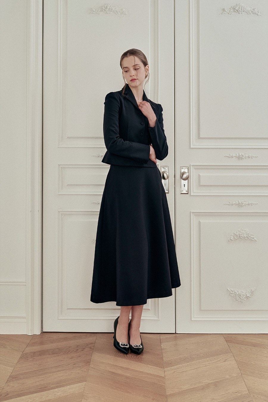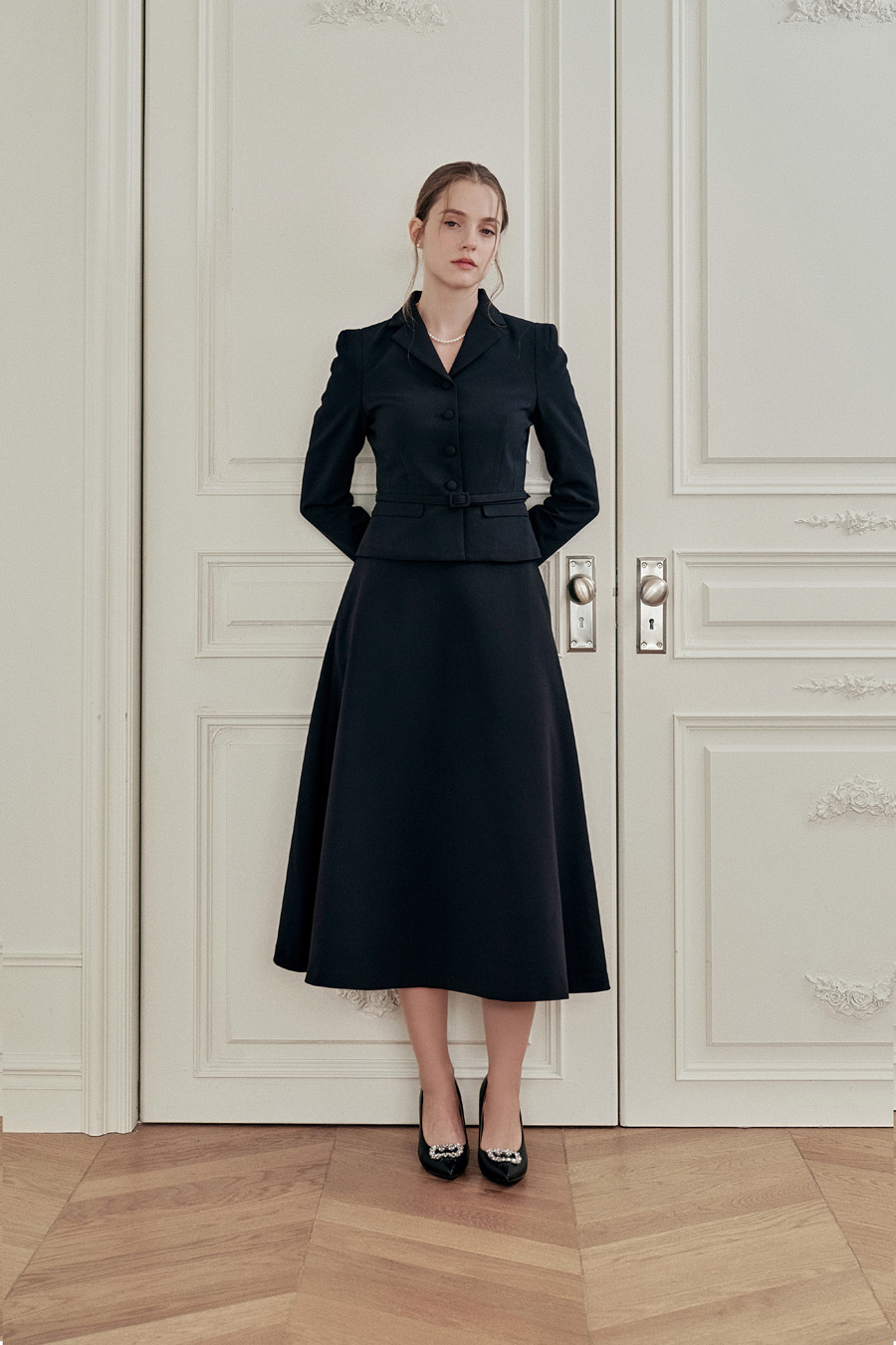 가장 클래식한 무드를 완성하는 플레어 스커트.