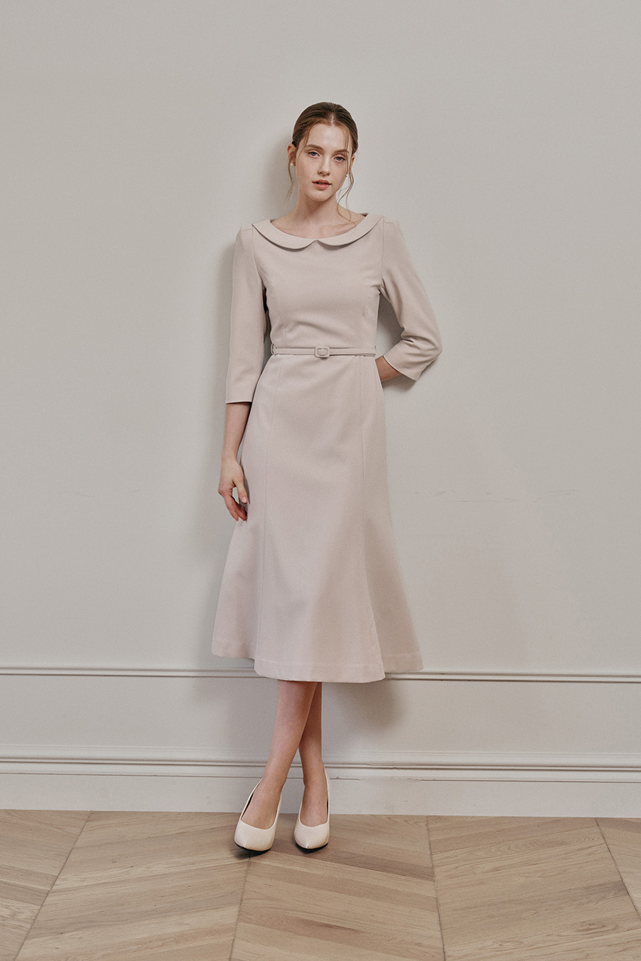 잘록한 허리선을 따라 자연스럽게 퍼지는 스커트는
