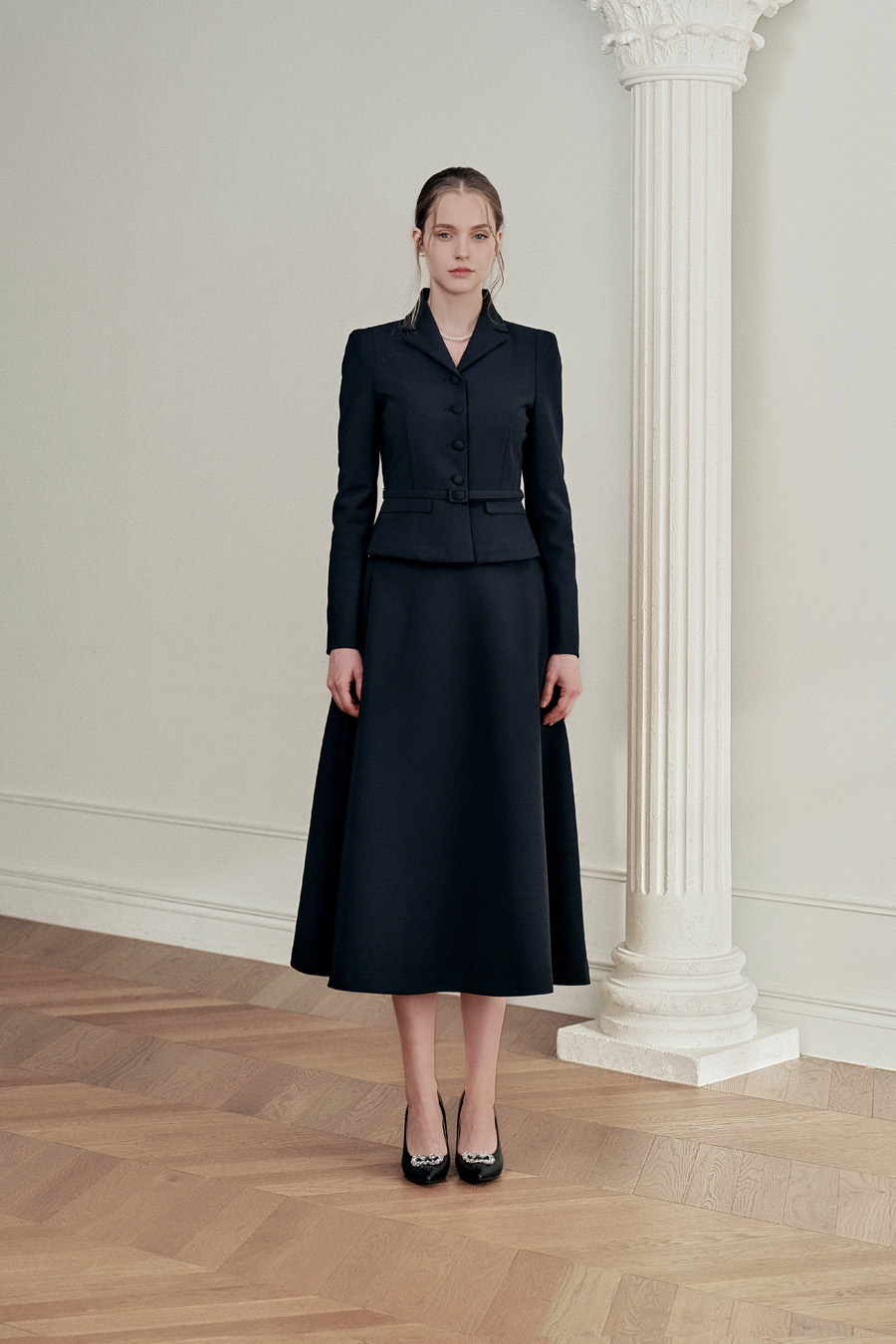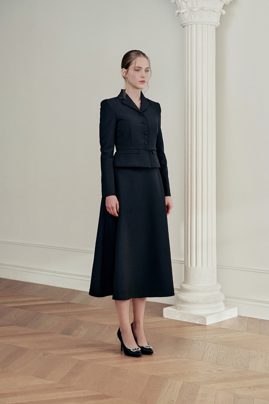 플레어 라인이 단정하면서도 우아한 실루엣을 만들어냅니다.