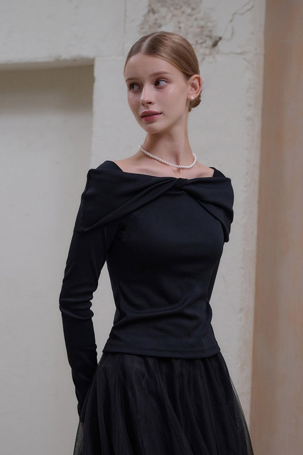 [7차리오더] 로라 트위스트 오프숄더 탑 [블랙]