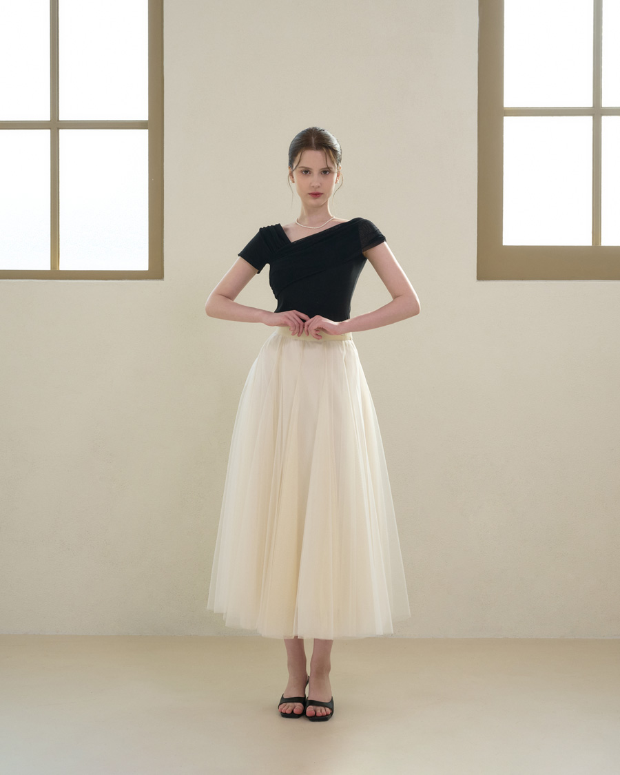 Black : 은은한 광택감이 느껴지는 고급스러운 블랙 샤 스커트