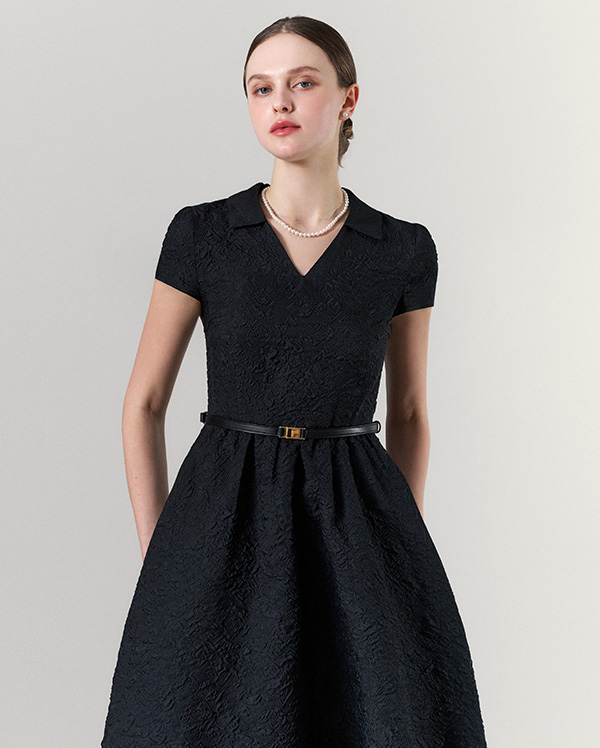 - 잘록한 허리 라인과 풍성한 스커트 실루엣으로 페미닌함 연출