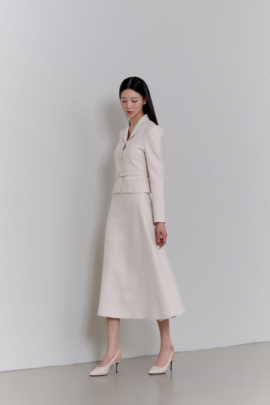 - 허리선부터 퍼지는 플레어 실루엣