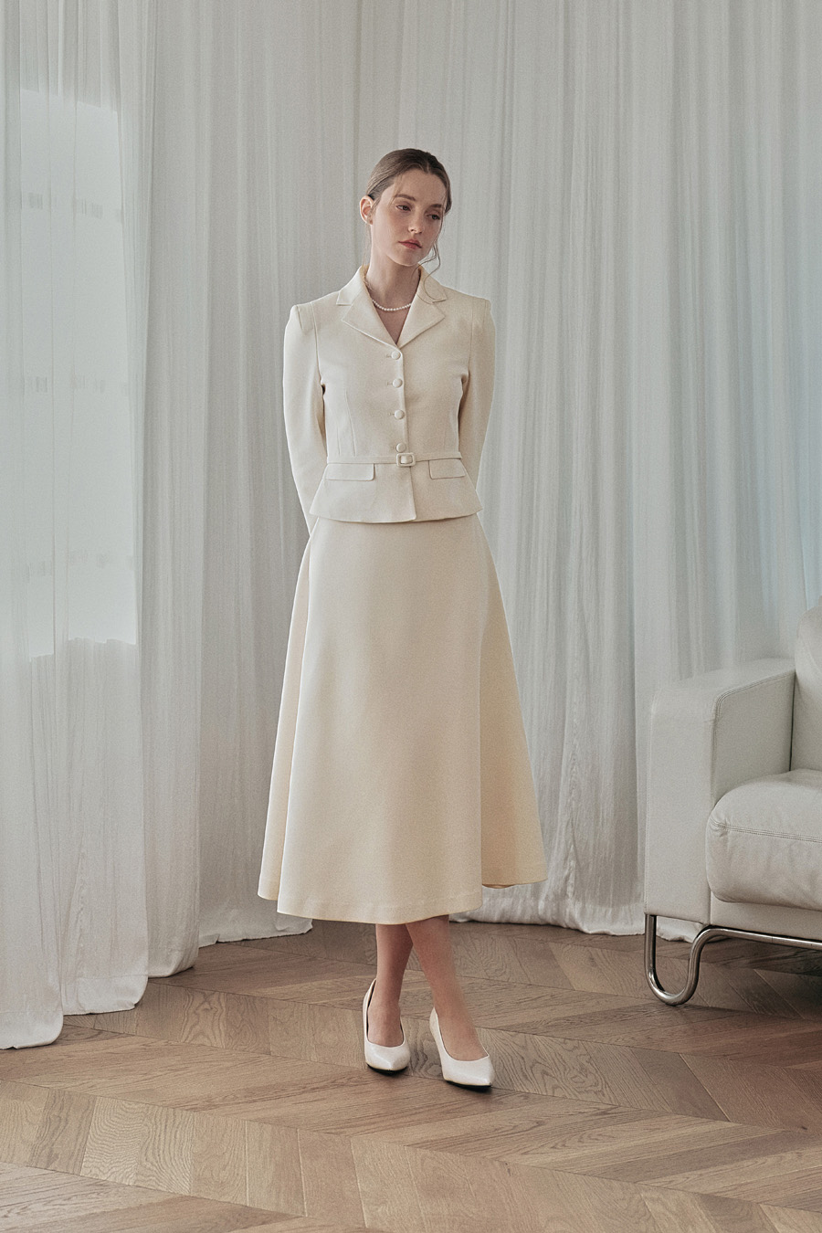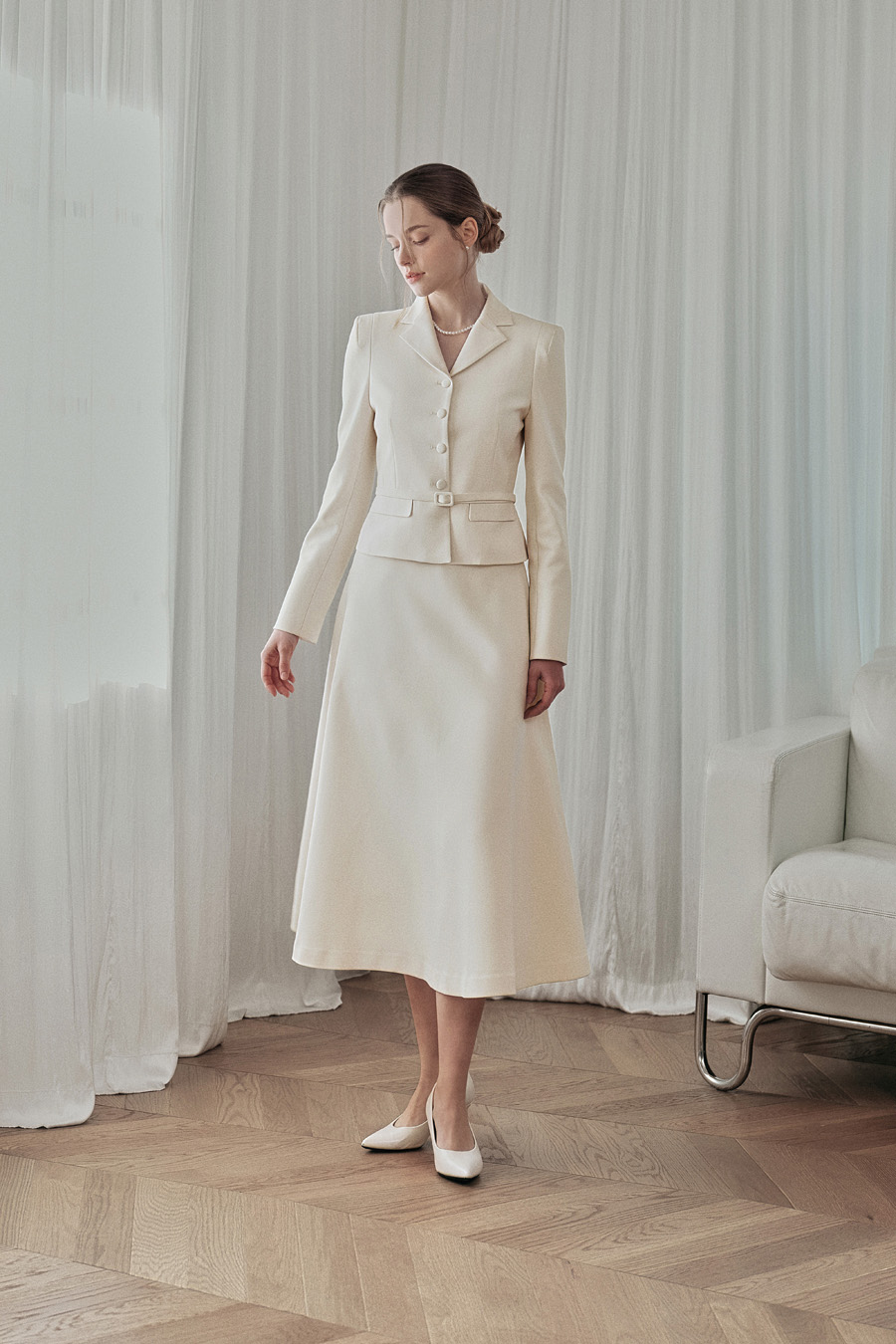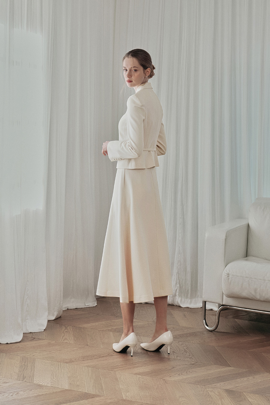 가장 클래식한 무드를 완성하는 플레어 스커트.