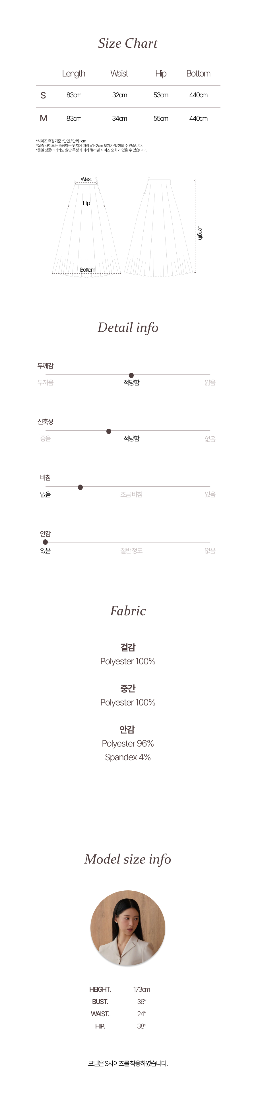 허리밴드는 스커트와 동일한 원단을 사용하였고