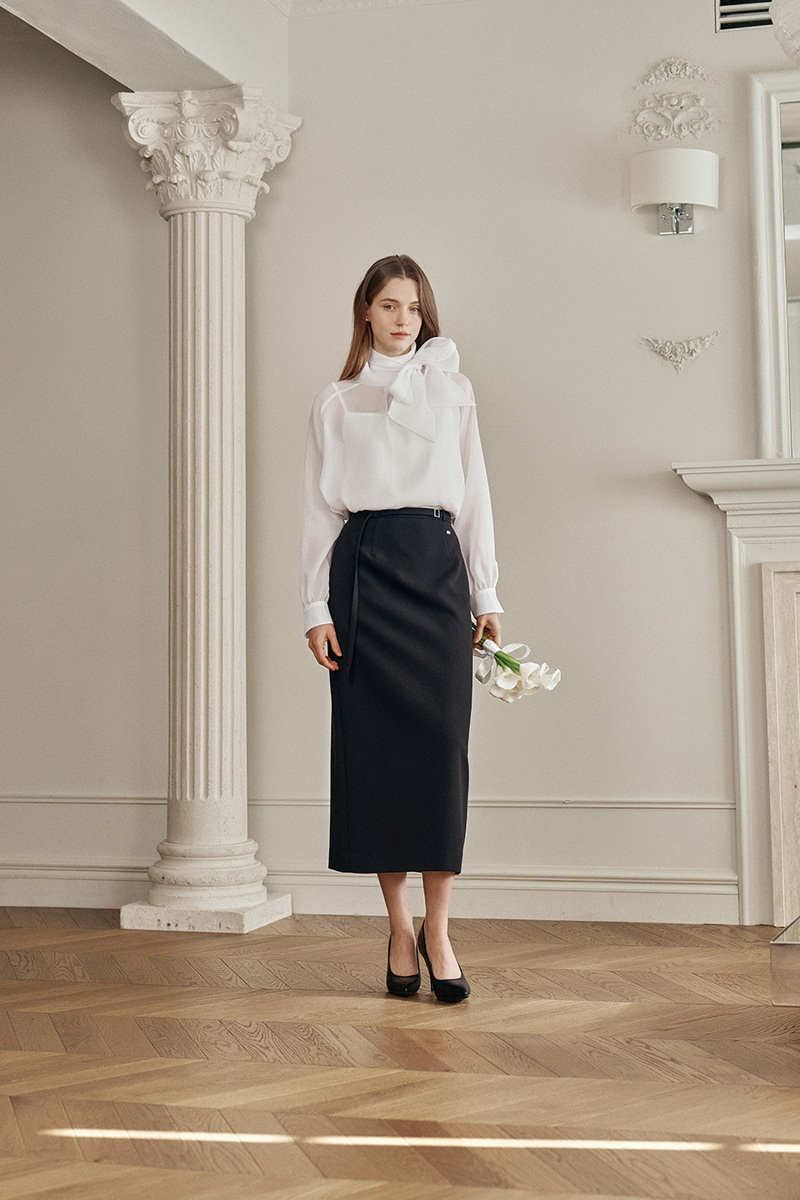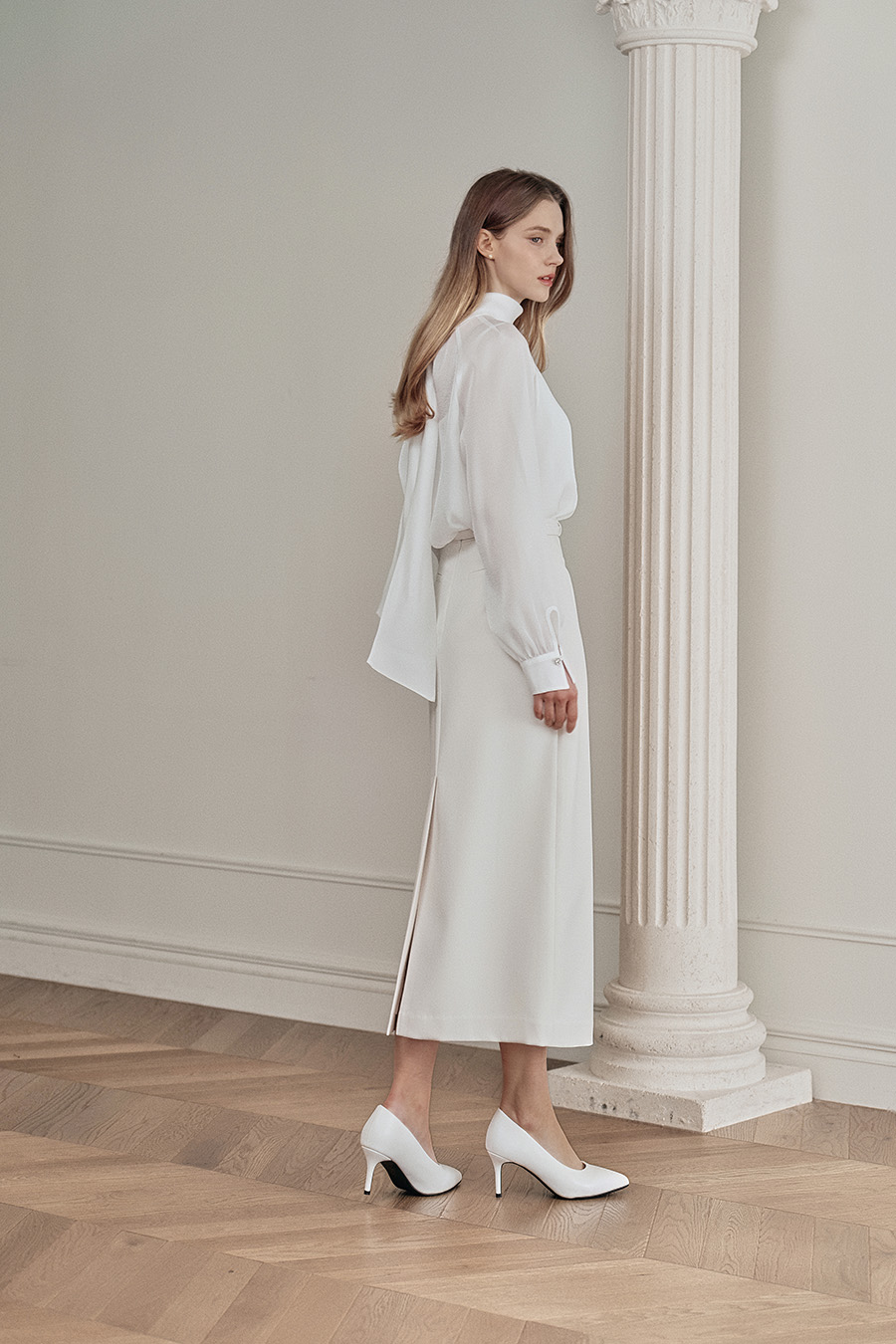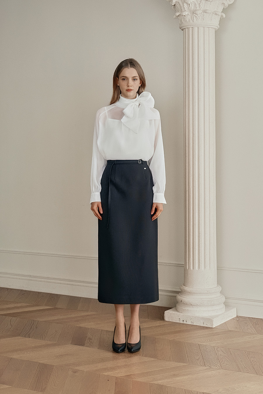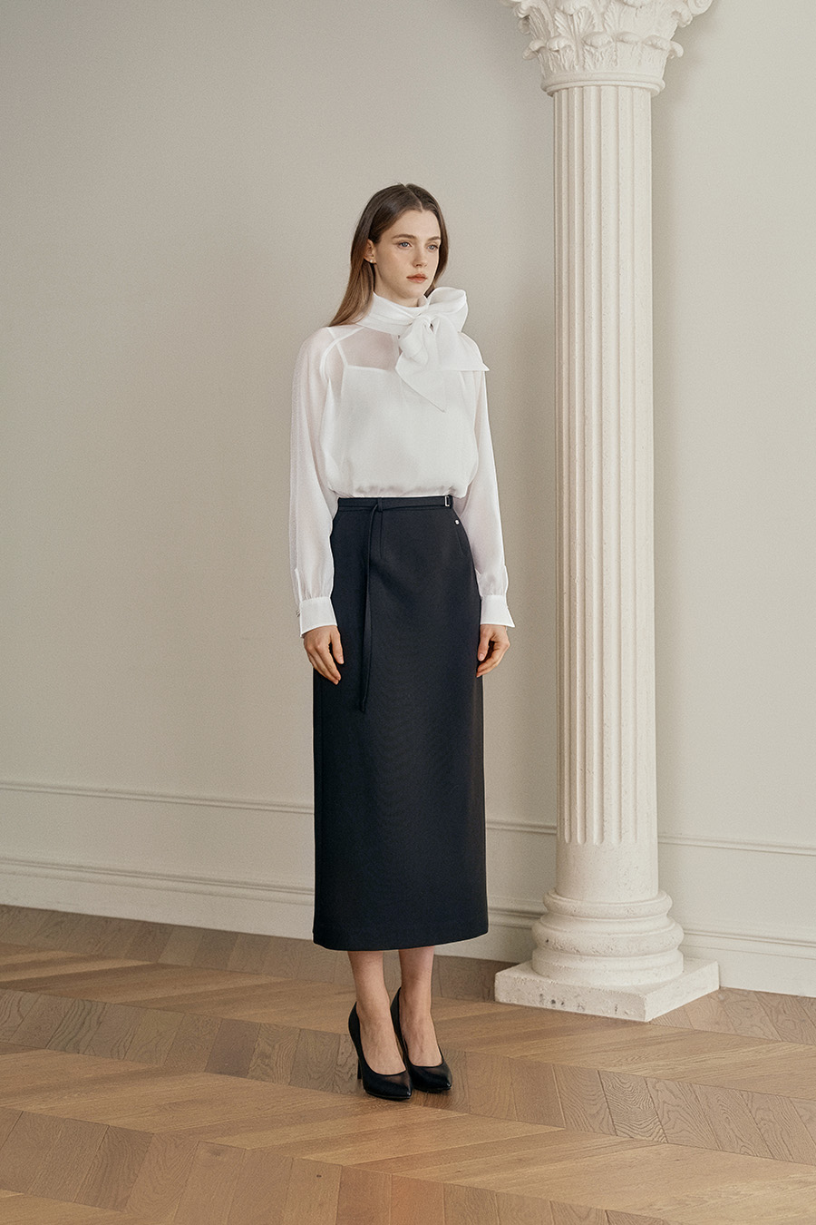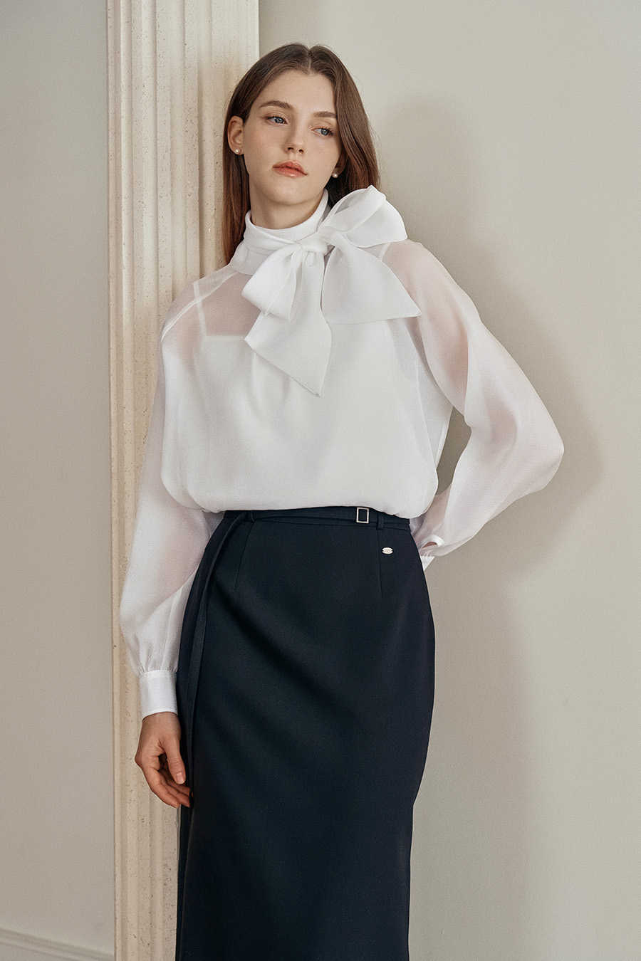 은은한 펄이 더해진 페미닌한 무드의 타이 블라우스입니다.