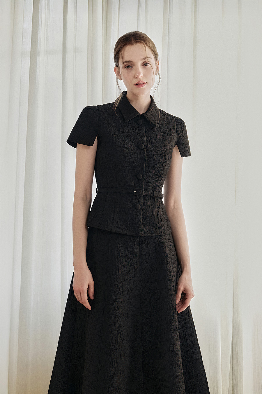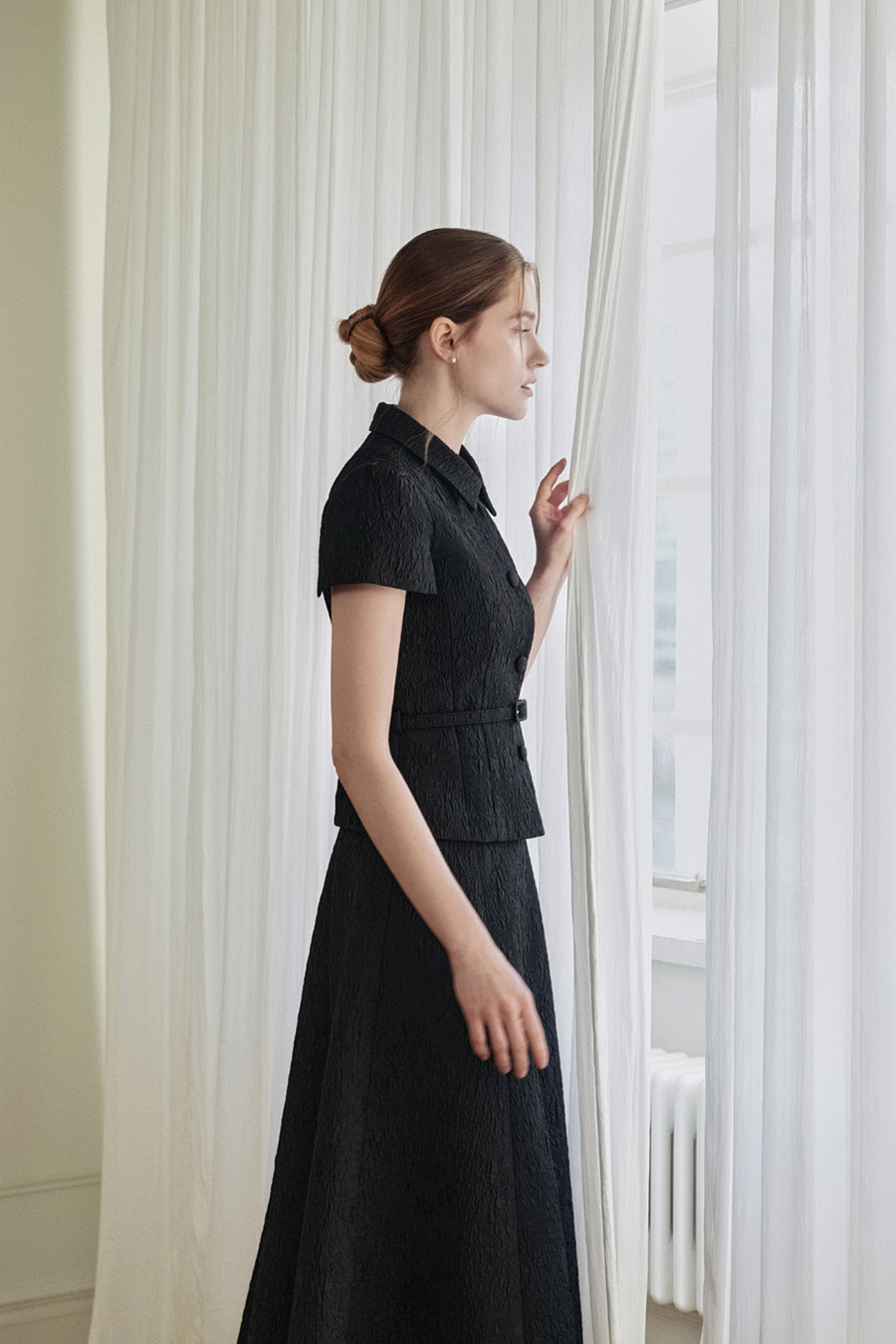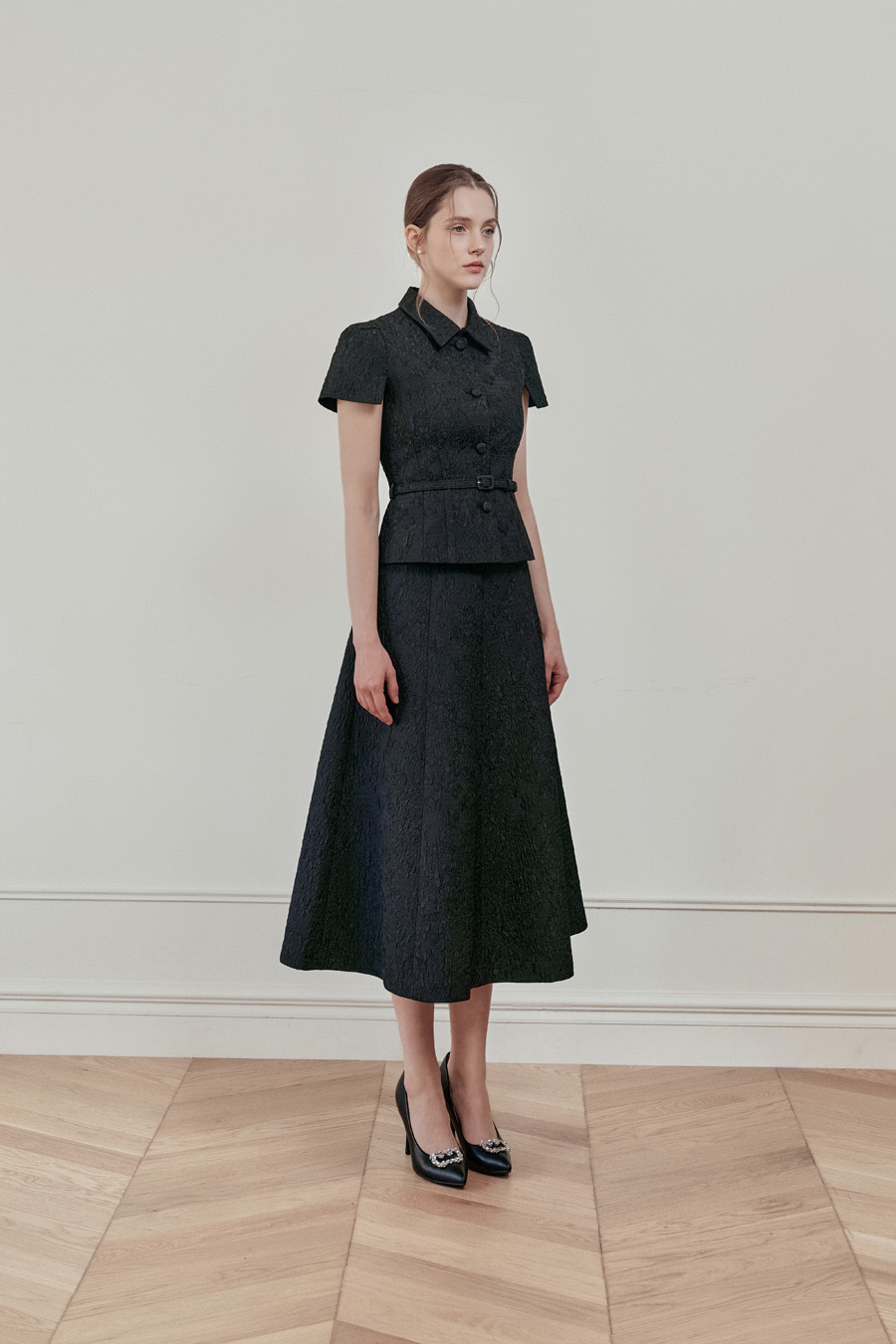Camille Jacquard Flare Skirt 와 셋업으로 매치했을 때