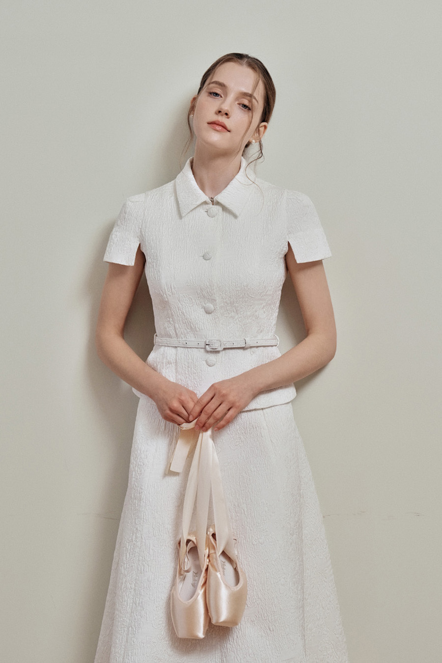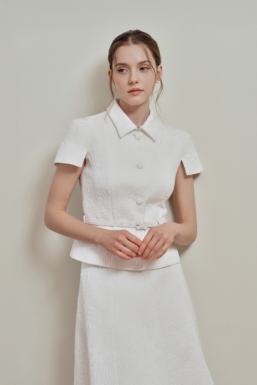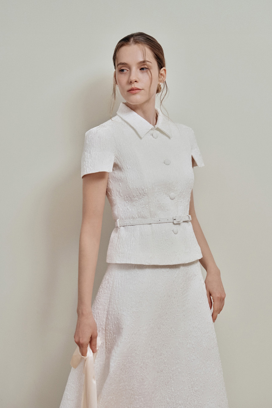 Camille Jacquard Flare Skirt 와 셋업으로 매치했을 때