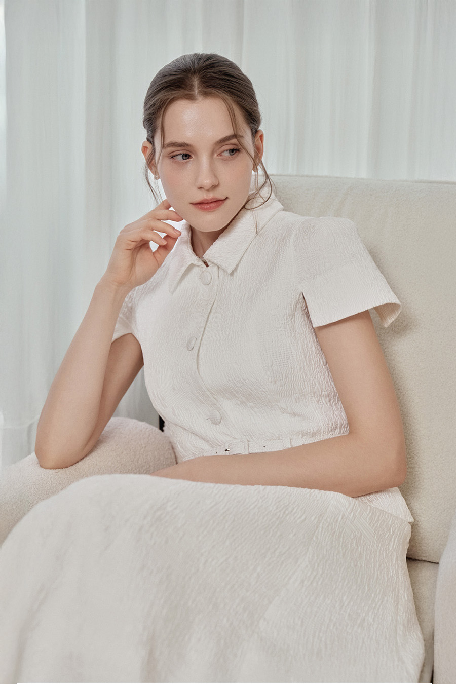 - 케이프 스타일의 캡소매 슬릿으로 활동성과 우아한 무드 연출